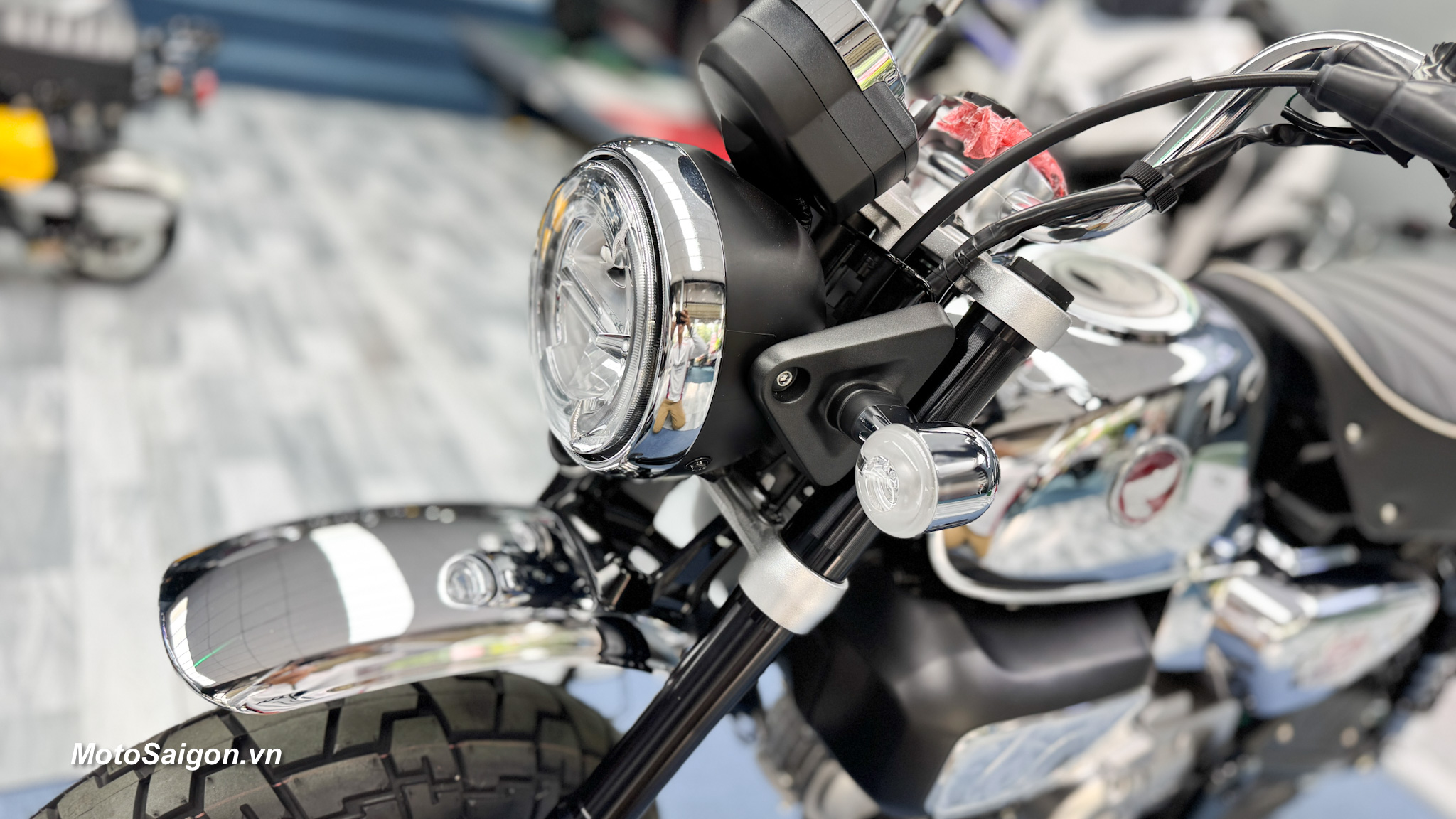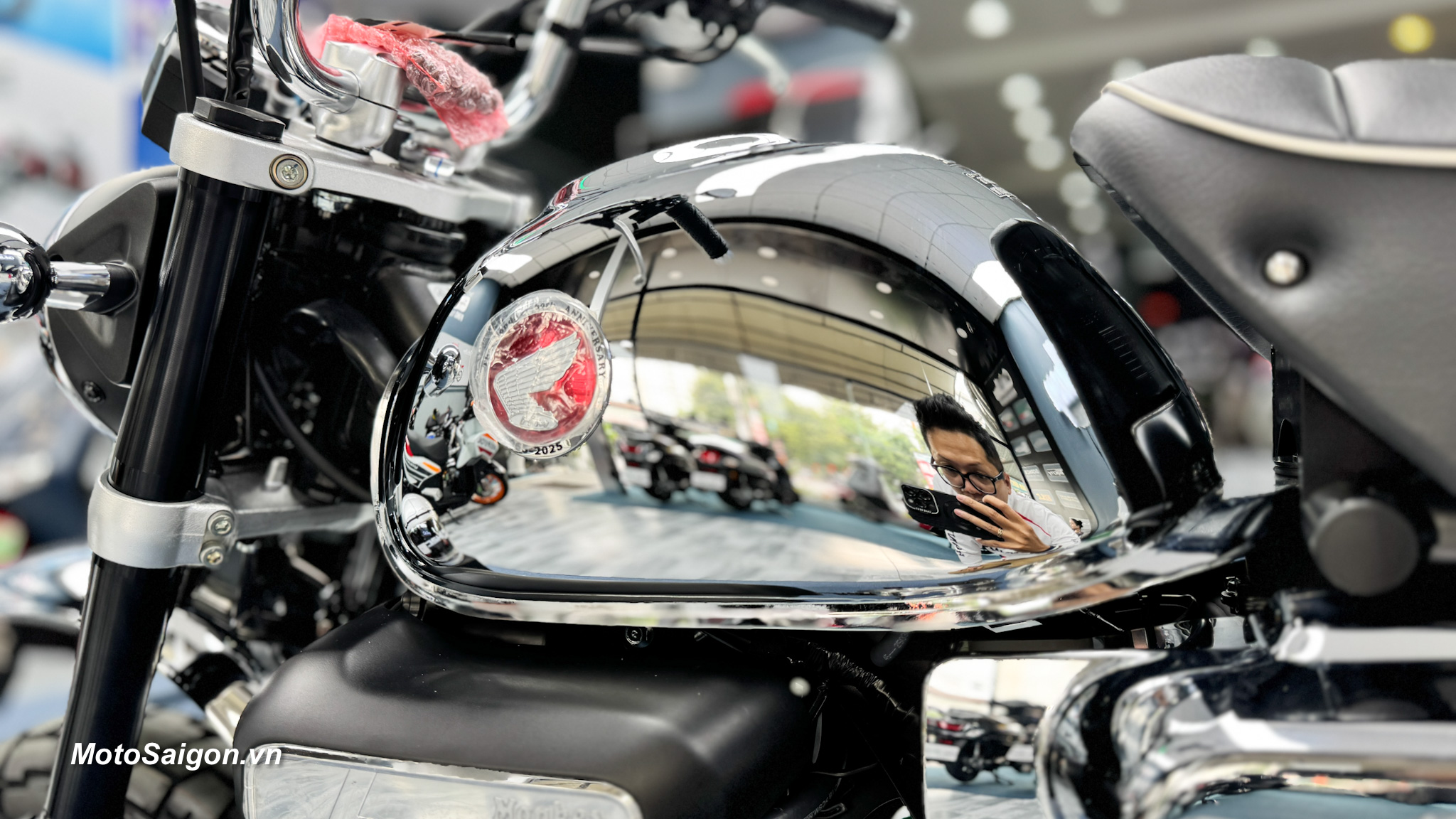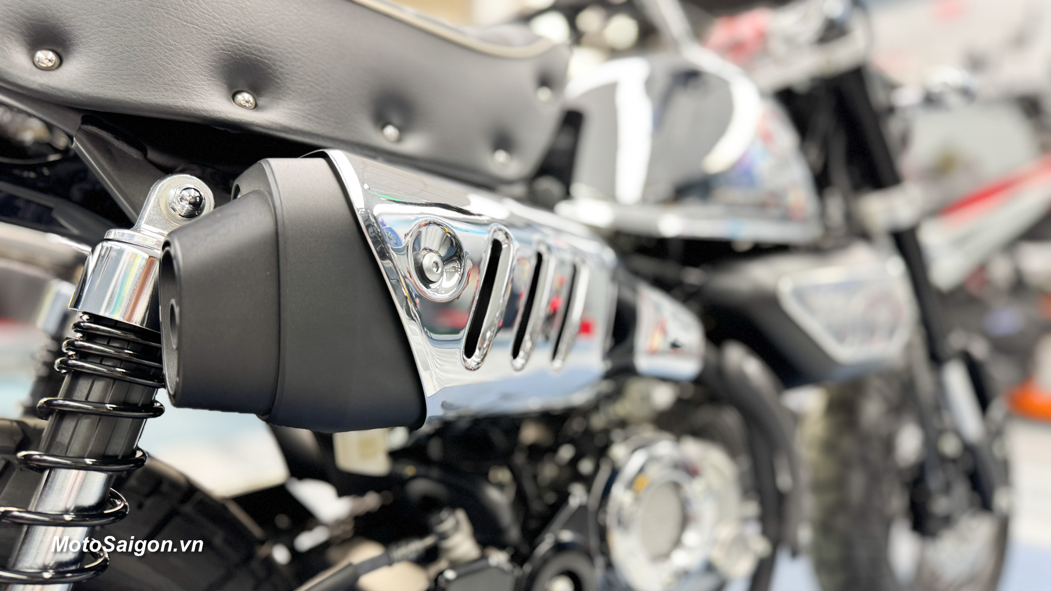 - Lớp hoàn thiện Chrome lộng lẫy: Điểm nhấn nổi bật nhất của Monkey Chrome Legacy là lớp sơn mạ crôm bóng bẩy bao phủ toàn bộ thân xe, từ bình xăng, các tấm ốp bên, đến nắp hộp lọc gió. Lớp mạ crôm này không chỉ tạo vẻ ngoài sang trọng mà còn gợi nhớ đến những mẫu xe cổ điển, khiến chiếc xe trở thành tâm điểm chú ý trên mọi cung đường.
