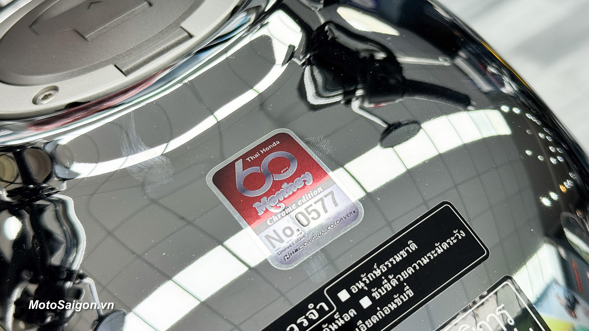 - Số thứ tự giới hạn: Mỗi chiếc Monkey Chrome Legacy đều được gắn một biển số seri Chrome Edition độc đáo, đánh dấu số thứ tự sản xuất, nhấn mạnh tính chất phiên bản giới hạn và giá trị sưu tầm của xe. Theo Motosaigon cập nhật, Monkey Chrome Legacy số thứ tự 0009 đã về Việt Nam.