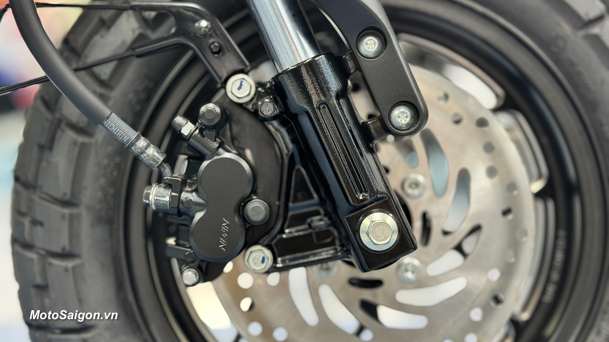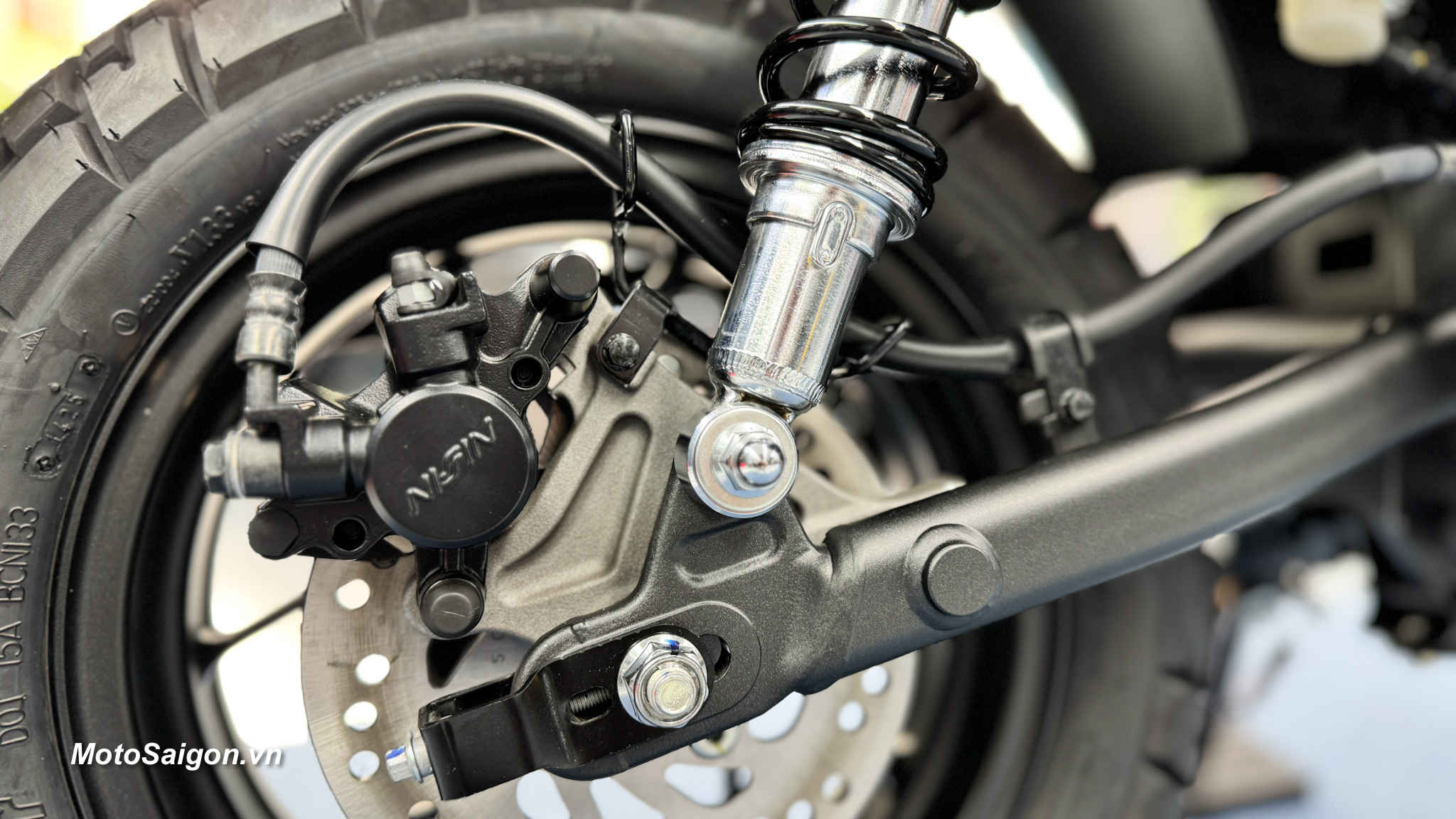- Lốp xe chất lượng cao: Bánh xe hợp kim 12 inch với lốp không săm kích thước 120/80-12 (trước) và 130/80-12 (sau), mang lại độ bám đường tốt và khả năng xử lý linh hoạt.