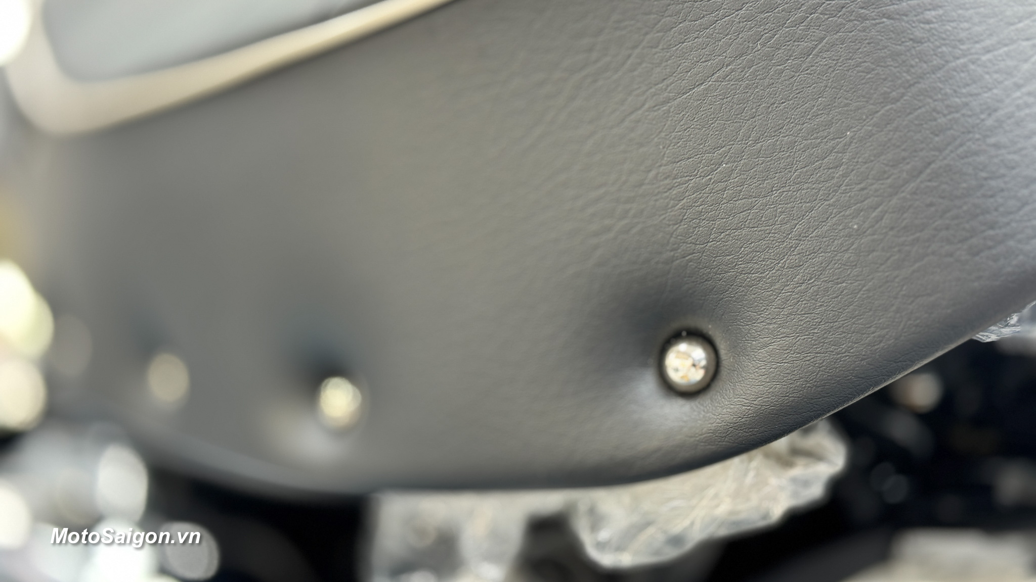 - Yên xe cao cấp: Ghế xe được bọc da đen cao cấp với các đinh tán thép không gỉ xung quanh, vừa mang phong cách cổ điển vừa toát lên sự tinh tế. Thiết kế này không chỉ tăng tính thẩm mỹ mà còn mang lại cảm giác thoải mái khi ngồi.