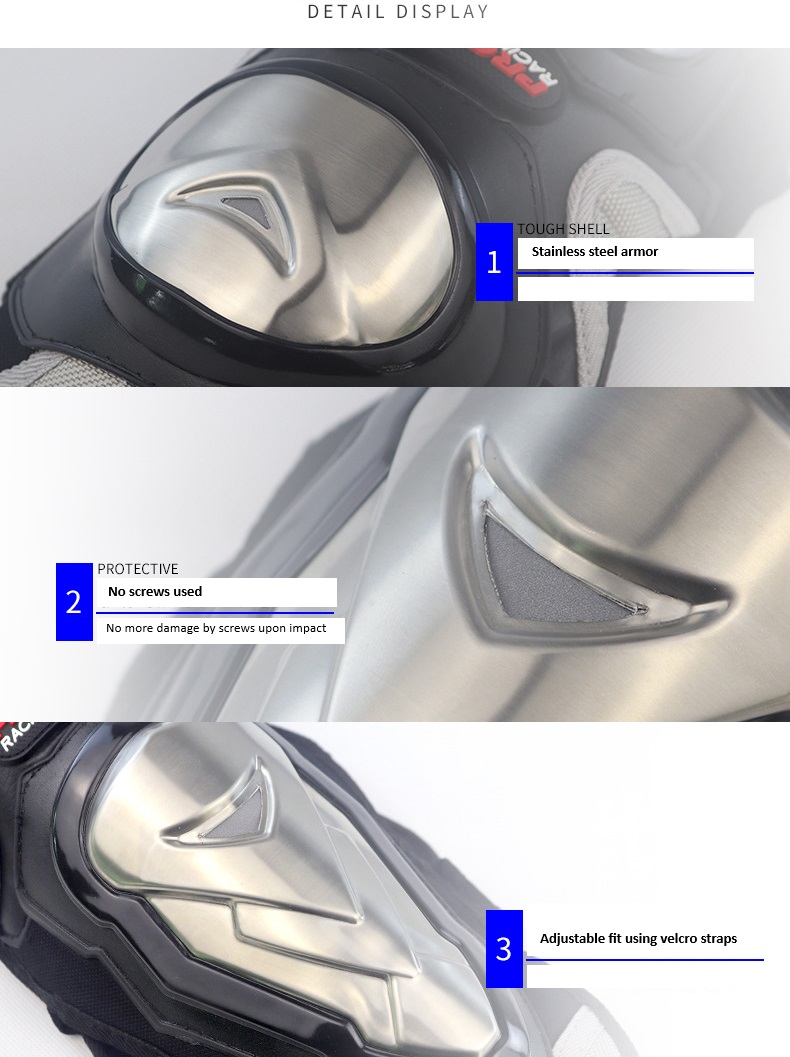 Bộ giáp 4 mảnh Pro-biker bảo vệ đầu gối, khuỷu tay bằng chất liệu thép không gỉ inox cứng cáp, bảo vệ chân tay khỏi những va đập.