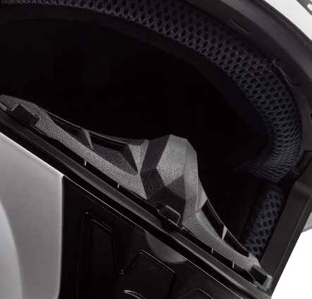 Phía sau mũ bảo hiểm là phần đệm cổ giúp bảo vệ tốt hơn cổ của người đội trong các tình huống khẩn cấp. Phần đệm này không những có chức năng tạo lớp đệm cố định đầu người đội tránh rung lắc khi đi đường mà còn đem lại sư thoải mái, tránh mỏi cổ cho người đội trên suốt chặng đường dài.