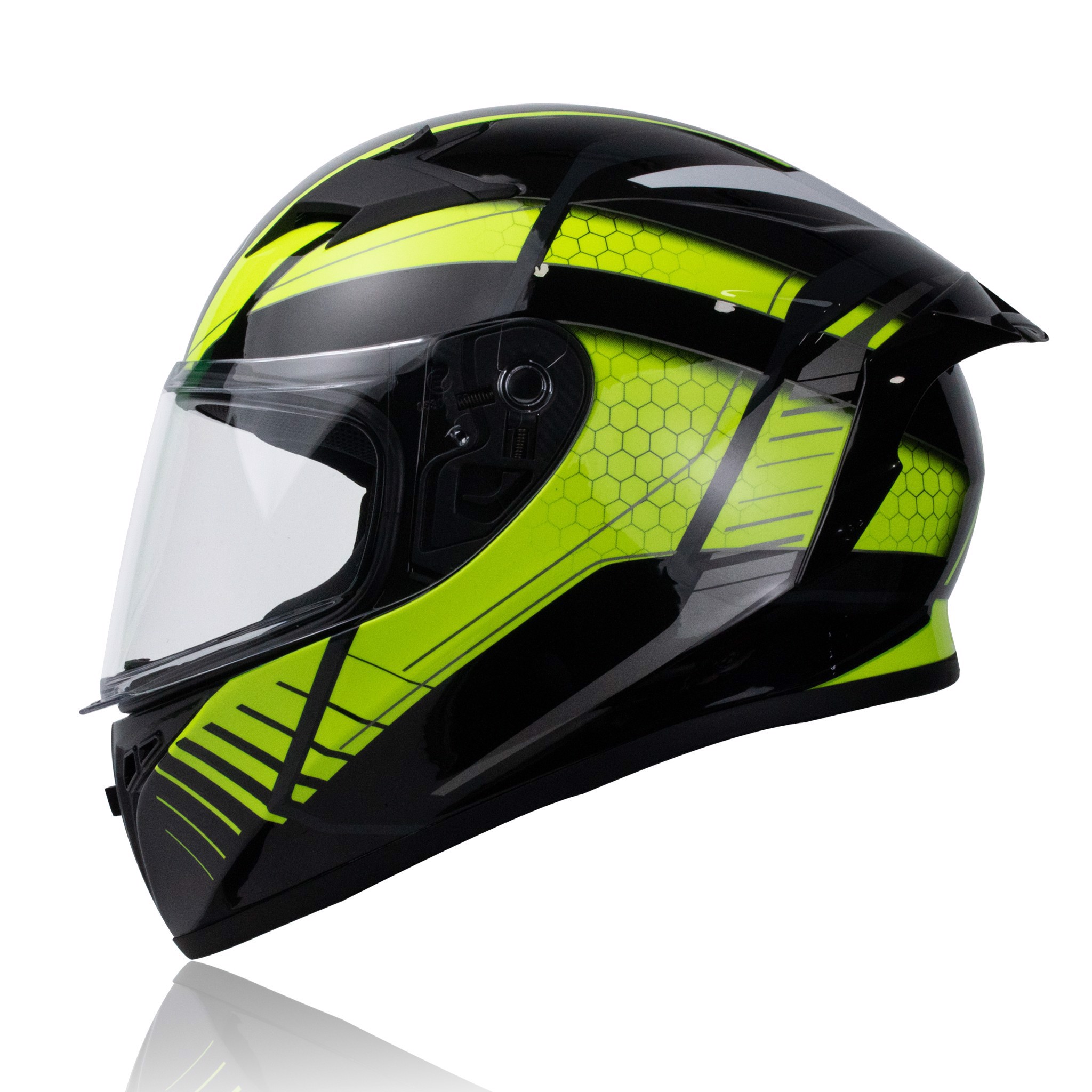Kính chắn mũ Fullface Yohe 978 Plus độ bền cao, có tác dụng chắn gió, bụi, đá băng, côn trùng bay vào mắt,… mà không làm biến dạng hình ảnh. Thao tác tháo kính nhanh chóng, dễ dàng.