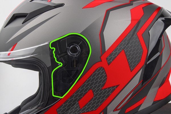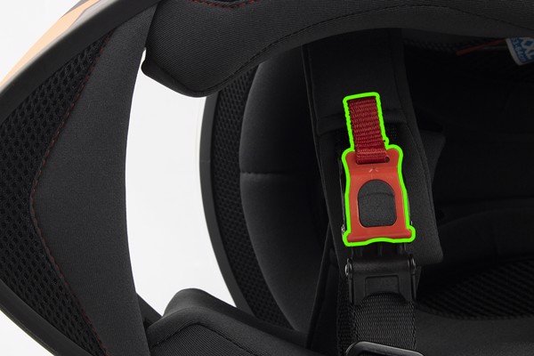 Khóa lẫy kim loại chất lượng cao, có các nấc để thao tác khóa mũ dễ dàng và tiện lợi. Thao tác mở khóa lại càng dễ dàng hơn khi chỉ cần kéo phần dây ruy băng màu đỏ phía trên khóa.
