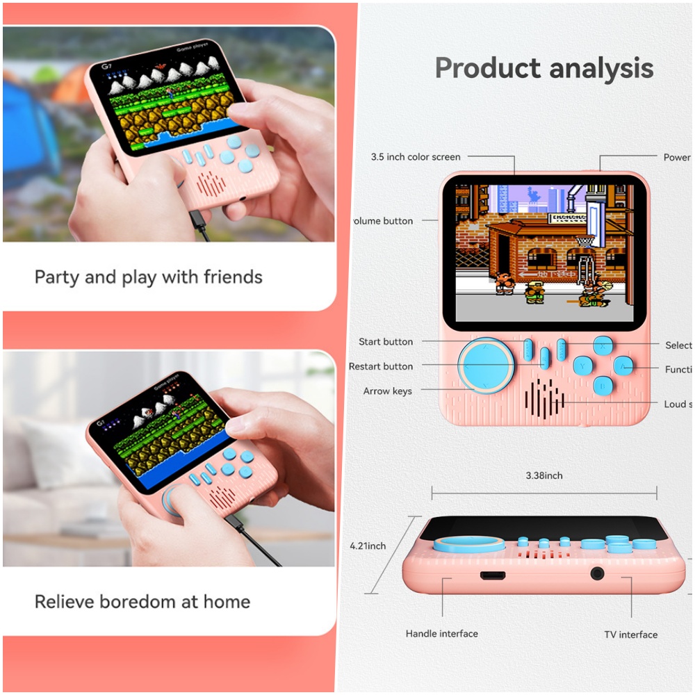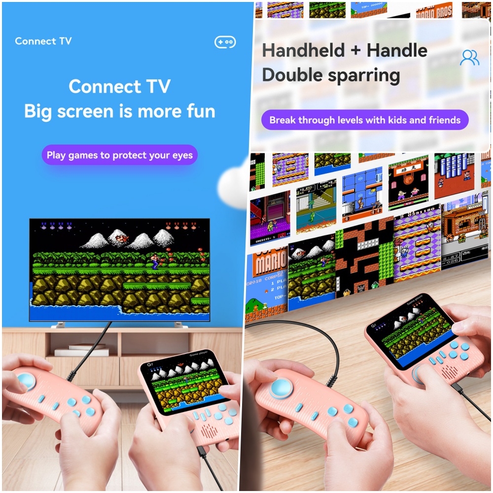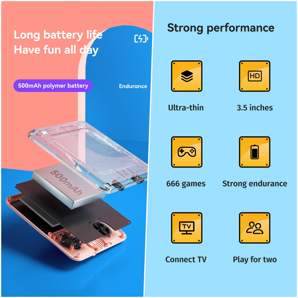 With 666 built-in games, there’s no shortage of fun – from nostalgic classics to action-packed adventures, there’s something for everyone. Want to share the excitement? Plug in a second controller and enjoy 2-player action right on the device. Or connect it to a TV via RCA cable for a full-screen throwback gaming session.