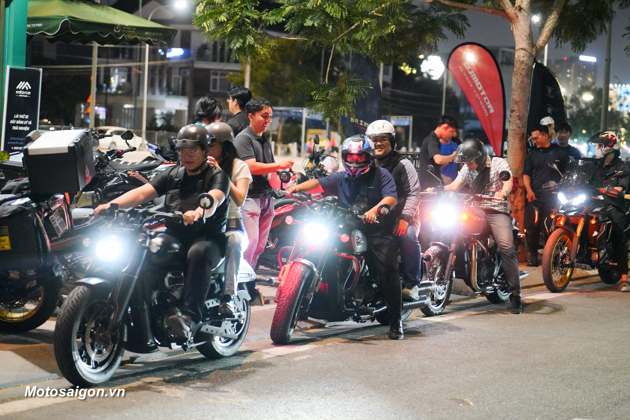 Mỗi xe đều được biker trực tiếp cầm lái trên cung đường thử được thiết kế an toàn, dưới sự hướng dẫn của đội ngũ từ MForce. Nhiều anh em sau khi trải nghiệm đã liên tục chia sẻ cảm xúc: “SRV400 VS dễ chơi, cruiser mà nhẹ nhàng”; “DS900DS lực kéo kinh khủng, đi xa chắc chắn phê”; hay “Cromwell 1200X torque khủng, retro mà chạy rất bốc”…