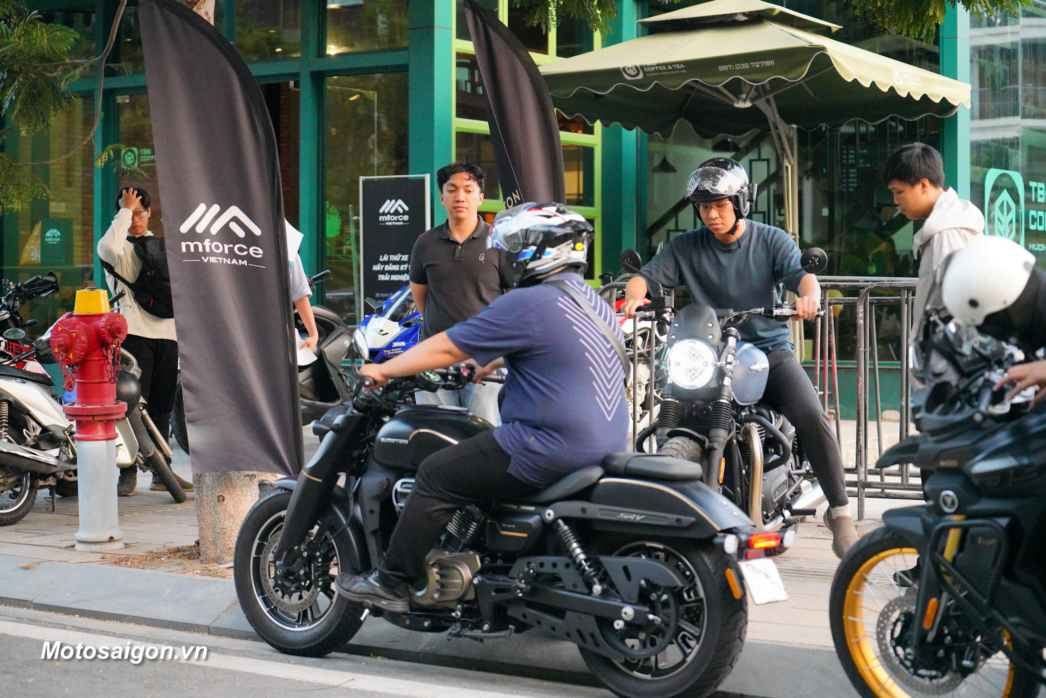 Từ sáng sớm, hàng trăm biker đã đổ về khu vực sự kiện, tiếng máy nổ rền vang, không khí hào hứng lan tỏa khắp nơi. Nhiều anh em đến từ các CLB moto, nhóm rider Thủ Đức – Quận 2 và các tỉnh lân cận, vừa thưởng thức cà phê vừa chờ lượt lái thử. Đại diện MForce Việt Nam cho biết: “Chúng tôi rất bất ngờ và vui mừng trước sự ủng hộ nhiệt tình từ cộng đồng. Đây chính là minh chứng cho sức hút của dàn xe mà chúng tôi mang đến hôm nay.”